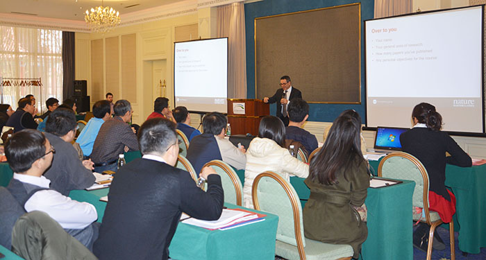 隨后的交流中,兩位大師級(jí)的資深編輯,圍繞論文寫(xiě)作與發(fā)表的主題,重點(diǎn)講解了如何將研究成果轉(zhuǎn)化為科研論文,包括科學(xué)論文寫(xiě)作的關(guān)鍵點(diǎn),以及如何正確使用 學(xué)術(shù)語(yǔ)言等。同時(shí),對(duì)科學(xué)出版流程,論文提交流程,以及同行評(píng)議流程等做了詳細(xì)的講解。對(duì)于一些焦點(diǎn)問(wèn)題,比如如何向高影響力的期刊提交論文,如何與編輯 和評(píng)閱人進(jìn)行溝通等,兩位大師結(jié)合自身的豐富工作經(jīng)歷,與學(xué)員進(jìn)行面對(duì)面的傳授經(jīng)驗(yàn)。在“Q & A”環(huán)節(jié),學(xué)員們結(jié)合自身撰寫(xiě)科研論文的經(jīng)歷或遇到的困惑,與兩位大師開(kāi)展了熱烈的互動(dòng)和討論。培訓(xùn)班反響熱烈,參會(huì)學(xué)員均表示汲取了經(jīng)驗(yàn),開(kāi)拓了視野, 受益匪淺,希望以后有機(jī)會(huì)參與后續(xù)的系列講座。