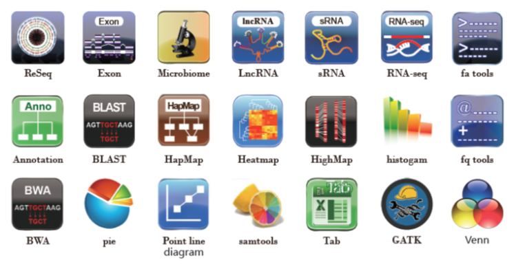 標(biāo)準(zhǔn)化流程分析的集成式App是依據(jù)公司多年來進(jìn)行生物信息分析的經(jīng)驗,集成了一類生物信息分析所要用到的多個軟件,并讓這些軟件串聯(lián)起來,形成一個標(biāo)準(zhǔn) 化的分析流程。標(biāo)準(zhǔn)流程分析出的結(jié)果與常規(guī)交由公司進(jìn)行數(shù)據(jù)處理分析得到的結(jié)果一致,以分析報告的形式展示。