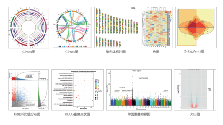 百邁客生物云平臺通過對大量已發(fā)表論文中的圖和表進(jìn)行總結(jié),編制了大量的圖表繪制軟件,用戶可以根據(jù)自己的需求進(jìn)行變換,找到適合的方式。常用的圖表類型包括:點(diǎn)線圖、餅狀圖、柱狀圖、Venn 圖和熱圖等。