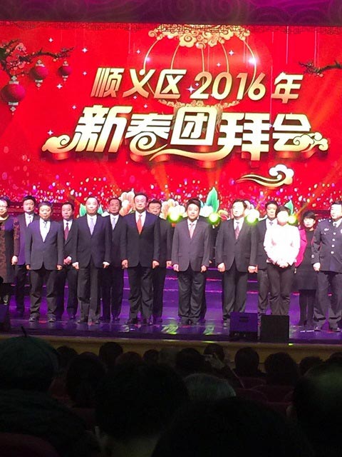 2016年2月1日下午,順義區(qū)2016年新春團拜會在順義區(qū)影劇院隆重舉行,區(qū)各委、辦、局、園區(qū)、鎮(zhèn)代表及區(qū)內(nèi)57家企業(yè)代表歡聚一堂,歡歌笑語,共賀新春。百邁客作為生物領(lǐng)域一家發(fā)展迅猛的朝陽企業(yè),應(yīng)邀參加了此次團拜會,暢敘友誼,共話順義美好未來。