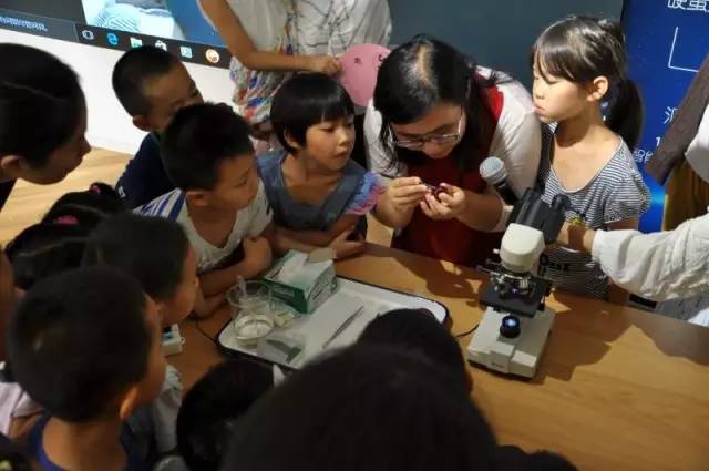 顯微鏡觀察細(xì)胞環(huán)節(jié),孩子們排起了長長的隊伍,興高采烈地實際動手操作顯微鏡。想必這些小小的腦袋里會留下這樣的嘆號:“原來還有一個肉眼看不到的世界是這個樣子”。