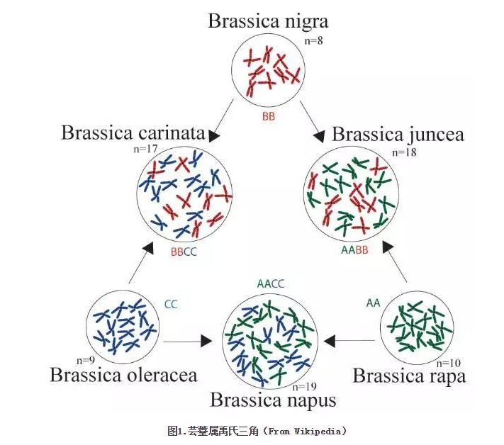 芥菜的基因組是異源四倍體(AABB),在“禹氏三角”中由白菜(AA),黑芥(BB)雜交后加倍形成,在演化過程中變異類型非常豐富。問題是油用芥菜的AA和菜用芥菜的AA是來自同一個(gè)亞種,還是來自多個(gè)亞種呢,這個(gè)問題就是A亞基因組的起源問題。