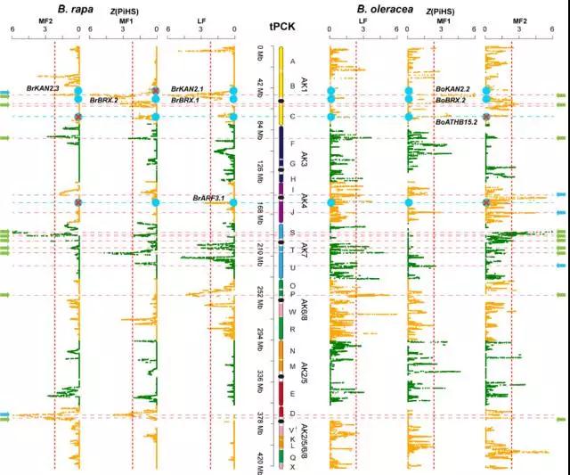 圖3. ?蕓薹(左)和甘藍(lán)(右)亞基因組的選擇信號檢測