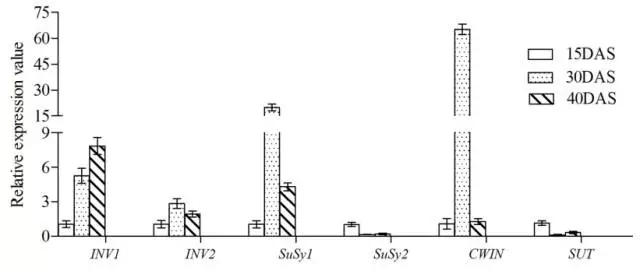 5.使用qRT-PCR驗證參與蔗糖代謝的差異表達(dá)基因。這6個差異表達(dá)基因的表達(dá)水平與RNA-seq結(jié)果是一致的。