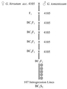 父母本:Gossypium hirsutum acc.4105(輪回親本)× G. tomentosum (供體親本)
