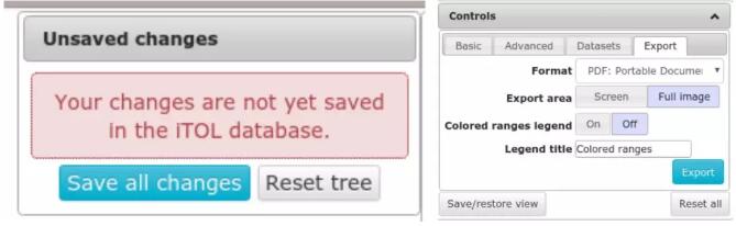 6、編輯確定后,點(diǎn)擊右上邊的Save all changes即保存了當(dāng)前的編輯,編輯完成并保存后,選擇export選項卡,選擇輸出文件的格式,一般選擇svg/pdf等矢量圖格式,Export area務(wù)必選擇Full image。