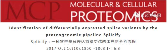 Splicify提供了一種蛋白組數(shù)據(jù)分析方法,可以用于確定由mRNA選擇性剪接產(chǎn)生的疾病特異性蛋白生物標(biāo)志物,適合用臨床前模型系統(tǒng)來解決基礎(chǔ)研究問題。其中剪接變異在RNA水平上的驗證是通過RT-qPCR以及Iso-seq得到的全長轉(zhuǎn)錄本進(jìn)行的;通過Iso-seq得到的全長轉(zhuǎn)錄本可以對新的剪接事件在蛋白層面上進(jìn)行驗證。