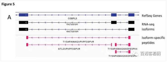 蛋白質(zhì)水平上發(fā)現(xiàn)的一些非典型的isoform翻譯成的蛋白質(zhì)可能在與常規(guī)類型的蛋白的功能不同。比如,Rac1b,相比于常見的RAC1蛋白能夠增強細(xì)胞存活能力。在不同的組織中,OSBPL3的isoform在RNA水平上表現(xiàn)出不同的表達(dá),表明它們可能具有不同的功能。 ?基于RNA-seq數(shù)據(jù)檢測到的少量的蛋白isoform揭示了目前蛋白質(zhì)組學(xué)的研究難點。mRNA 水平上發(fā)現(xiàn)的isoform在蛋白質(zhì)水平上沒有識別出來可能有很多原因,包括生物和技術(shù)層面。首先,并非所有的異常的isoform都被翻譯成蛋白質(zhì)。另外,轉(zhuǎn)錄和翻譯的動力學(xué)相關(guān),特別是關(guān)于siRNA介導(dǎo)的下調(diào)制。同時,isoform個數(shù)少也可能是剪接區(qū)域的翻譯后修飾的結(jié)果,例如磷酸化。還有一些技術(shù)上的問題限制了splice-specific peptides的鑒定,比如exclusion 變異。