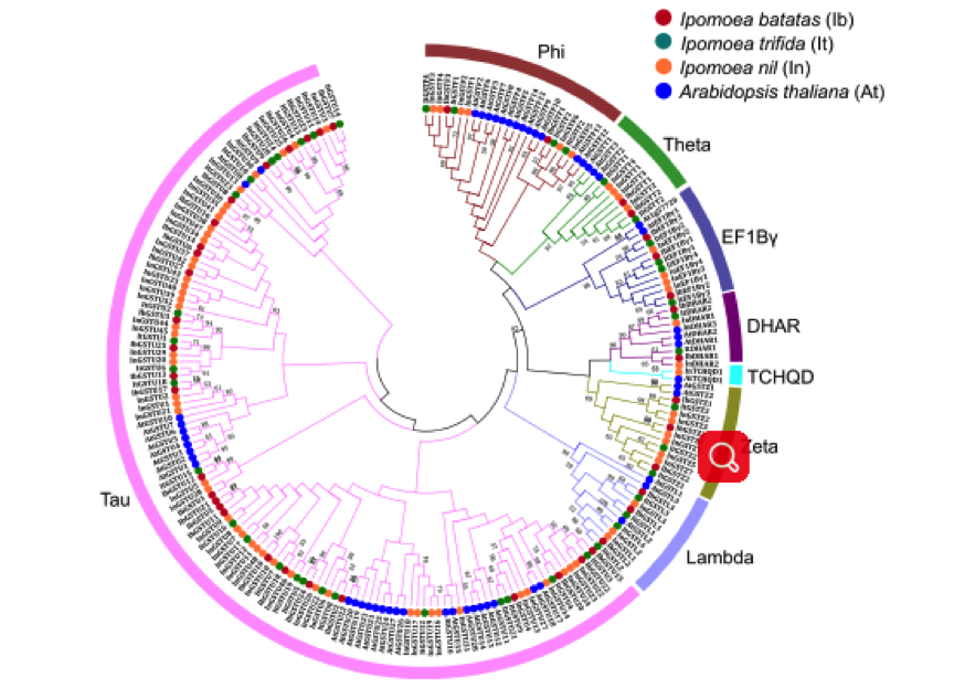 通過鑒定和分析谷胱甘肽S轉移酶基因家族揭示甘薯地上和地下組織響應非生物脅迫中的GST介導的網絡調控機制