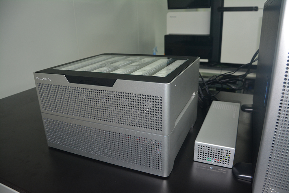 ????????2018年8月7日,Oxford Nanopore產(chǎn)品中的PromethION平臺(tái)已抵達(dá)北京百邁客測(cè)序?qū)嶒?yàn)室。截止目前,百邁客已經(jīng)擁有Oxford Nanopore的MinION、GridION X5和PromethION全套Nanopore測(cè)序儀,投資金額超過(guò)3000萬(wàn)人民幣。PromethION作為Oxford Nanopore產(chǎn)品中的平臺(tái),在設(shè)計(jì)不僅具備了實(shí)時(shí)、長(zhǎng)讀長(zhǎng)、直接測(cè)序等特點(diǎn),在產(chǎn)量上還可能與市場(chǎng)上傳統(tǒng)測(cè)序儀相匹敵。在2018年初,Oxford Nanopore官方宣布單張PromethION測(cè)序芯片的數(shù)據(jù)產(chǎn)出超過(guò)150 Gb。而實(shí)際上,使用臨床樣本、植物樣本以及測(cè)試樣本的用戶也能夠獲得單張芯片100 Gb 的產(chǎn)出。作為Oxford Nanopore的重要合作伙伴,百邁客將基于PromethION/GridION平臺(tái)為客戶提供商業(yè)測(cè)序服務(wù)。
