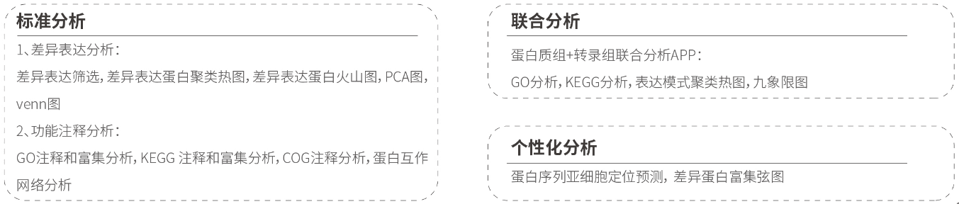 蛋白組云分析App兼具標(biāo)準(zhǔn)分析、聯(lián)合分析、個性化分析功能。