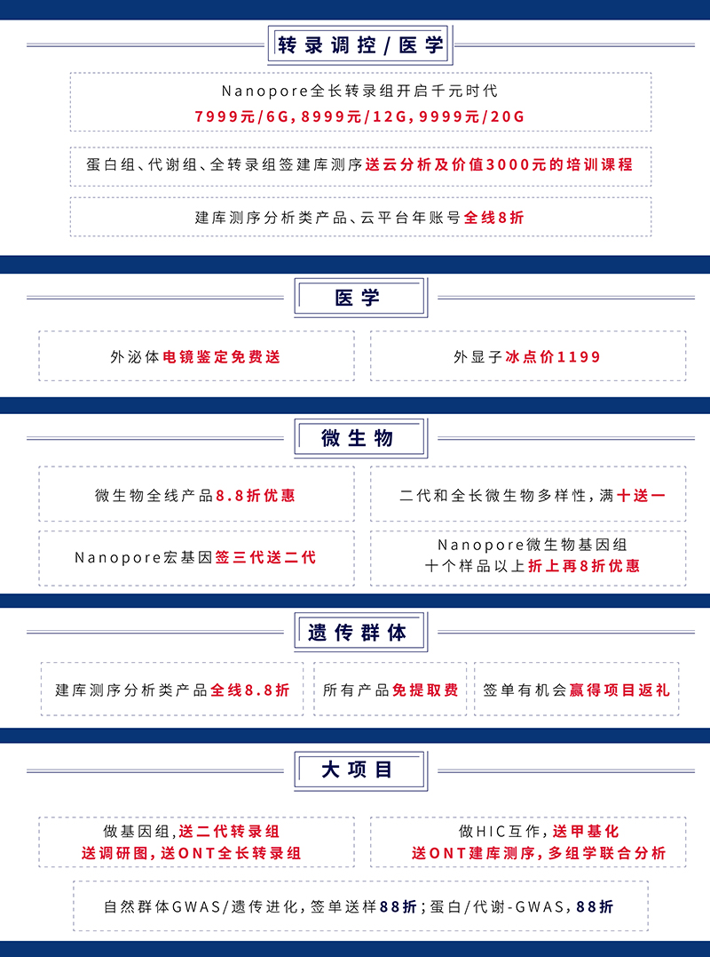 2018年即將結(jié)束,百邁客年末促銷活動(dòng)正在火熱進(jìn)行中!我們會(huì)為您設(shè)計(jì)實(shí)驗(yàn)方案和最實(shí)惠的價(jià)格套餐;如果您的材料需要準(zhǔn)備,經(jīng)費(fèi)即將到期,或項(xiàng)目有結(jié)余款項(xiàng),可以考慮預(yù)付款的方式,我們也設(shè)計(jì)了多種預(yù)付款政策供您選擇,等待樣品準(zhǔn)備。我們多樣化的平臺(tái)及配套服務(wù),一定可以滿足您的需要。