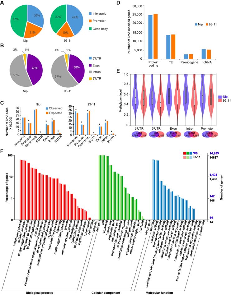 N6-甲基腺嘌呤(6mA)是在真核生物和原核生物中發(fā)現(xiàn)的豐富的DNA修飾之一,6mA的研究主要集中在其在原核生物中的功能。近年來,動(dòng)物真菌擬南芥和綠藻的研究開始揭示6mA甲基化的全基因組模式及其在真核細(xì)胞中調(diào)節(jié)基因表達(dá)的作用。6mA在植物中的生物學(xué)功能在很大程度上是未知的,水稻是世界上重要的作物之一,也是分子和遺傳學(xué)研究的模式物種,以擴(kuò)展我們在植物中6mA的知識(shí)。
