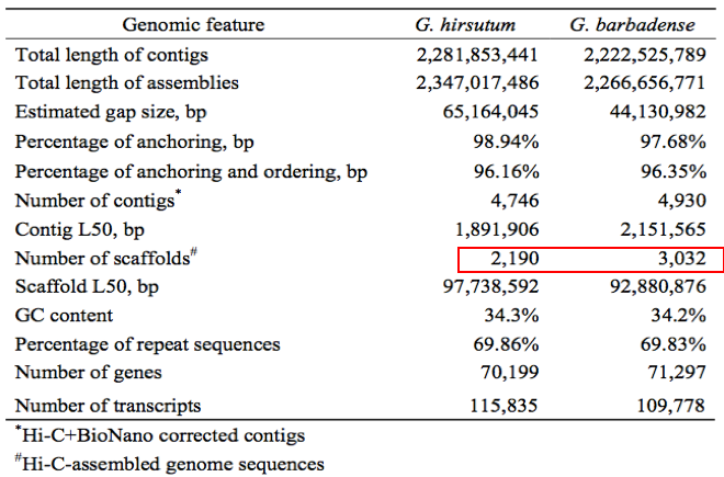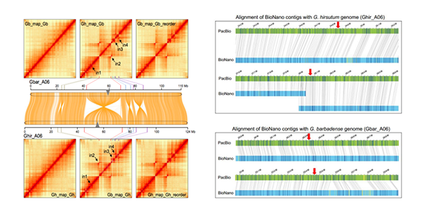 ?2018年12月4日,華中農(nóng)業(yè)大學作物遺傳改良國家重點實驗室張獻龍課題組首次通過三代測序(PacBio)+光學圖譜(BioNano)+Hi-C技術(shù)完成了異源四倍體陸地棉(Gossypium hirsutum)和海島棉(Gossypium barbadense)基因組組裝。該研究成果刊登于Nature Genetics,文中利用北京百邁客生物科技有限公司的三代PacBio測序組裝及Hi-C染色體掛載技術(shù),組裝獲得了高質(zhì)量栽培種異源多倍體棉基因組。>>下載文獻全文