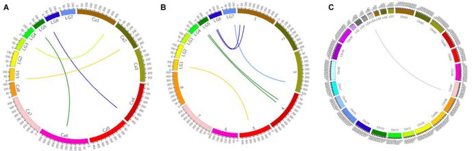 圖2.豌豆與其他三個物種近緣物種共線性分析