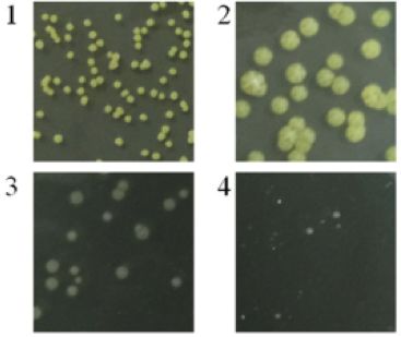 隨著鹽濃度的增高,菌落顏色由黃色變?yōu)榘咨?,且?%的NaCl鹽溶液中生長最佳,鹽濃度高于或低于該濃度,其生長速度均會下降。