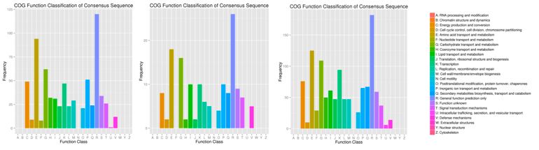 圖2、三個比較組的(5%/0%, 10%/0%和15%/0%)COG注釋