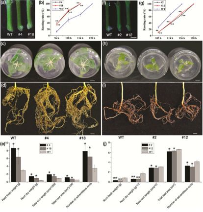 圖2、過表達、干擾和野生型植株不定根生成比較
