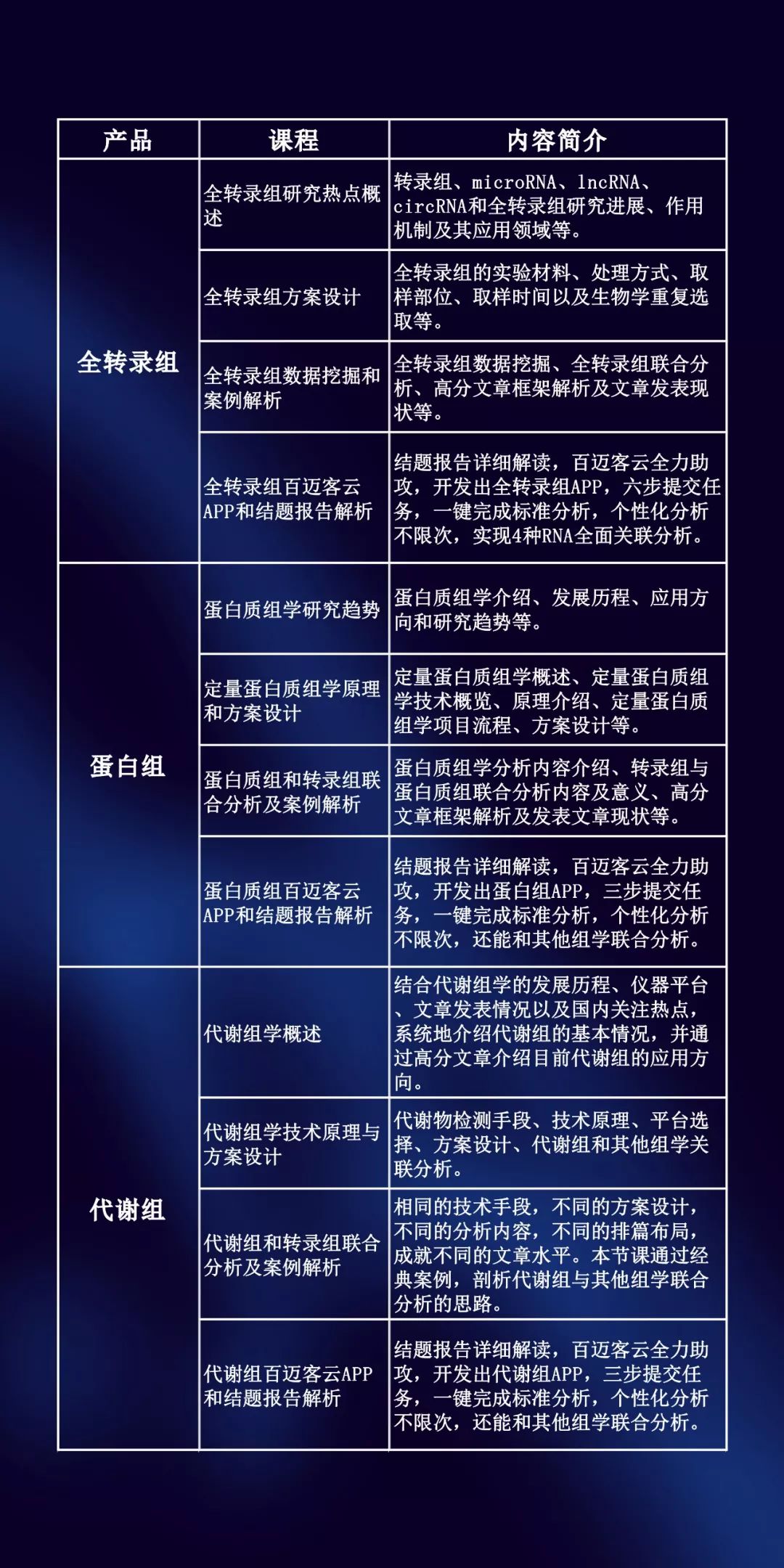 本次課程包含全轉(zhuǎn)錄組、蛋白質(zhì)組和代謝組,共計12課時,具體課程如下: