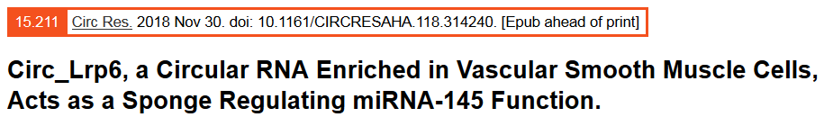 circ_Lrp6與miR-145直接結(jié)合:AGO2 IP實驗驗證二者與AGO2結(jié)合(circRNA與miRNA的結(jié)合由AGO2介導);RIP實驗驗證二者之間直接結(jié)合;等。