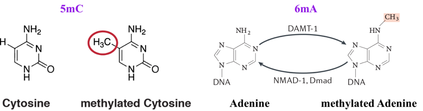 DNA甲基化是表觀遺傳領(lǐng)域中非常重要的一個(gè)研究方向,真核生物中最常見(jiàn)的DNA修飾是5mC(CG/CHG/CHH),而原核生物中6mA是最普遍的DNA修飾。然而,近幾年來(lái)的報(bào)道發(fā)現(xiàn)DNA 6mA修飾在真核生物基因組中廣泛存在。2018年7月和11月發(fā)表的文章都發(fā)現(xiàn)了人類(lèi)基因組中豐富的6mA修飾。值得關(guān)注的是,這兩篇人類(lèi)基因組中6mA的功能研究卻發(fā)現(xiàn)了兩種不同的聲音,其中Yan et al.?發(fā)現(xiàn)6mA水平在癌癥中有明顯下調(diào),然而Jeremy N. Rich et al.卻暗示了膠質(zhì)瘤中甲基化水平是顯著提升。因此,6mA在腫瘤甚至其他復(fù)雜疾病中的調(diào)控機(jī)制到底如何還需廣大研究者們的深入研究~