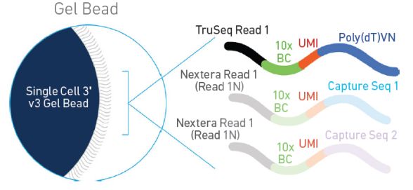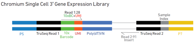 ChromiumTM Single Cell 3′ Solution是基于10 X Genomics平臺,能夠一次性分離、并標記500–10000個單細胞,并能在單細胞水平進行檢測的技術,其通過微流控系統(tǒng),將單細胞或長片段DNA分子快速分配到油包水的微反應體系中,每個微反應體系中的單DNA分子會獲得唯一的特異性分子標簽,制備生成的測序文庫可以在illumina平臺進行測序,并由10x Genomics提供數(shù)據(jù)分析及可視化軟件,測序實驗及分析流程可以和illumina系統(tǒng)無縫銜接。該平臺廣泛應用于3’單細胞轉錄組測序、基因組組裝應用、免疫組庫測序、ATAC-seq、人全基因組及全外顯子組測序。