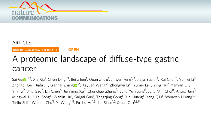 胃癌(GC)在全球腫瘤死亡原因中排名第三,我國是胃癌發(fā)病和死亡的重災區(qū)。Lauren分型從形態(tài)學上將GC分為三種類型:彌散型,腸型和混合型,彌漫型胃癌(DGC)占GC的約30%,預后最差,且缺少有效的靶向治療手段。盡管國際上發(fā)表過基于基因組和轉錄組的胃癌分子分型,但均沒有與臨床預后實現(xiàn)有效的關聯(lián)性。本文對胃癌組織及其附近組織進行蛋白質組學研究,是DGC的蛋白質組學分析,研究成果發(fā)表在Nature Communications雜志上。