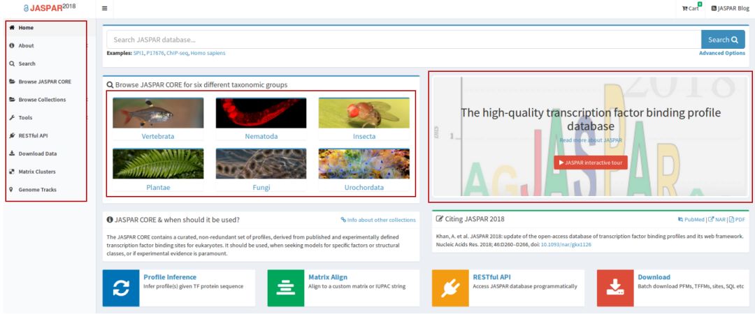 新版本除了在數(shù)據(jù)上的擴(kuò)展外,還提供多種搜索瀏覽方式(Famliy、Species或自定義搜索)、2個(gè)在線預(yù)測(cè)工具Predict TF和Predict TFBS(分別可以批量預(yù)測(cè)轉(zhuǎn)錄因子和預(yù)測(cè)DNA序列上的轉(zhuǎn)錄因子結(jié)合位點(diǎn))。