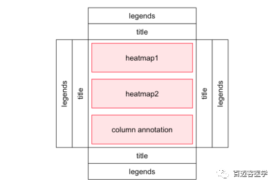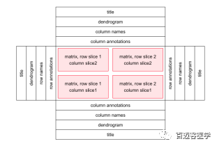 單個熱圖由熱圖主體和熱圖組件組成。 熱圖主體可以按行和列分割。 熱圖組件是標題,樹形圖,矩陣名稱和熱圖注釋,它們放在heamap體的四個側(cè)面上。