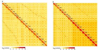 圖1,Hi-C數(shù)據(jù)在兩版亞洲棉基因組上的比對