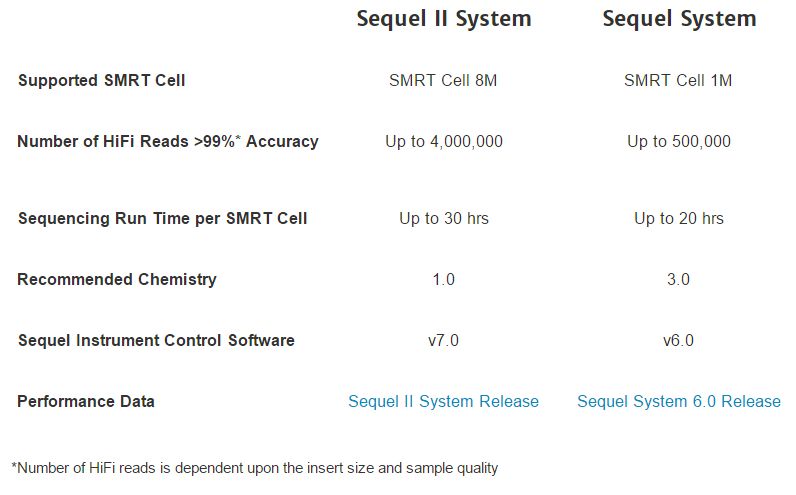 目前市面上的Pacbio平臺(tái)有:PacBio RSⅡ、PacBio Sequel、PacBio Sequel Ⅱ三種,其原理相同。隨著新平臺(tái)發(fā)布,測(cè)序的通量會(huì)提升,單G成本會(huì)降低。