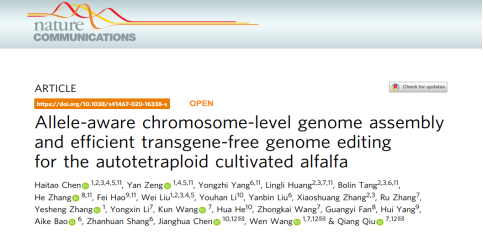 4.?Chen, H.?et al. Allele-aware chromosome-level genome assembly and efficient transgene-free genome editing for the autotetraploid cultivated alfalfa.?Nature Communications(2020).