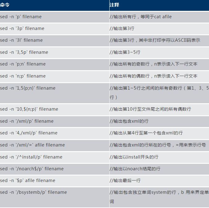 sed是一個(gè)強(qiáng)大的按行處理的命令,常用的命令如下: