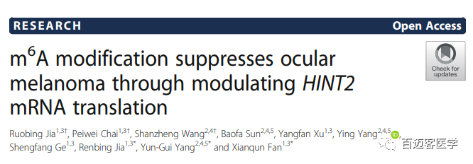文獻名:m6A modification suppresses ocular melanoma through modulating HINT2?mRNA translation