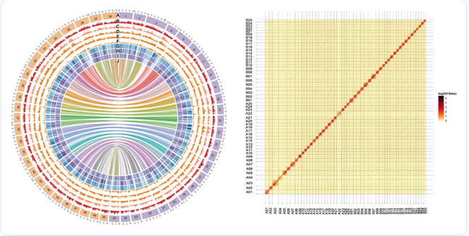 圖1 金魚(yú)A亞基因組和B亞基因組概況(A);金魚(yú)Hi-C互作熱圖(B)