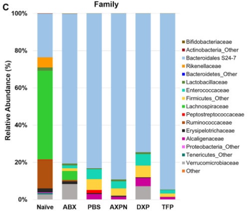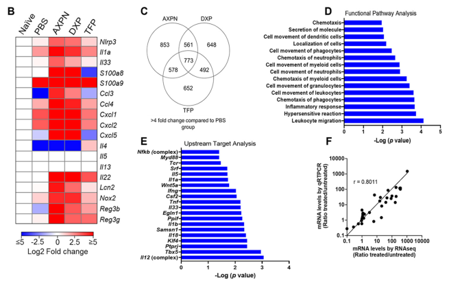 藥物介導(dǎo)的保護(hù)依賴(lài)于微生物群落的存在,其在喚起宿主防御以促進(jìn)保護(hù)性免疫作用。本文通過(guò)構(gòu)建小鼠模型進(jìn)行16S rRNA測(cè)序和轉(zhuǎn)錄組測(cè)序,發(fā)現(xiàn)藥物均增加了一些先天免疫應(yīng)答相關(guān)基因的表達(dá)??傊?,先導(dǎo)藥物通過(guò)激活I(lǐng)L-33和通過(guò)宿主防御機(jī)制去清除病原體,促進(jìn)疾病減輕和小鼠模型的生存。
