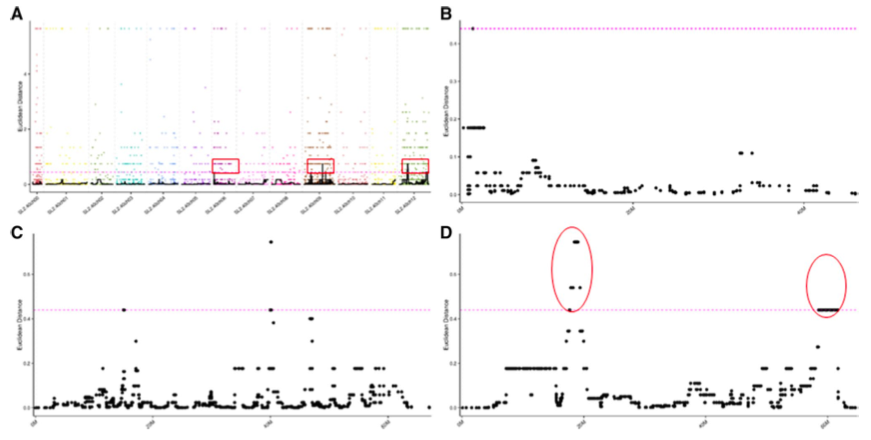 利用基因組重測序技術(shù)進(jìn)行大規(guī)模高通量SNP標(biāo)記鑒定是當(dāng)前國際上動(dòng)植物基因組學(xué)的研究熱點(diǎn)。利用得到的大量SNP標(biāo)記,可以對群體進(jìn)行高密度遺傳圖譜、BSA、GWAS、遺傳進(jìn)化等分析。百邁客在群體研究領(lǐng)域又有哪些應(yīng)用呢?下面和小編一起學(xué)習(xí)一下遺傳圖譜和BSA的項(xiàng)目案例。