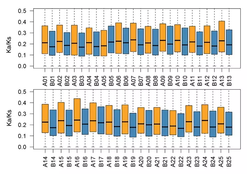 多倍體物種中,兩個亞基因組(同源基因組)所受到的選擇壓力往往不同:某亞(同源)基因組經(jīng)歷更強(qiáng)的純化選擇,另一個則經(jīng)歷較寬松的選擇,同源多倍體中可能同樣有這種現(xiàn)象。