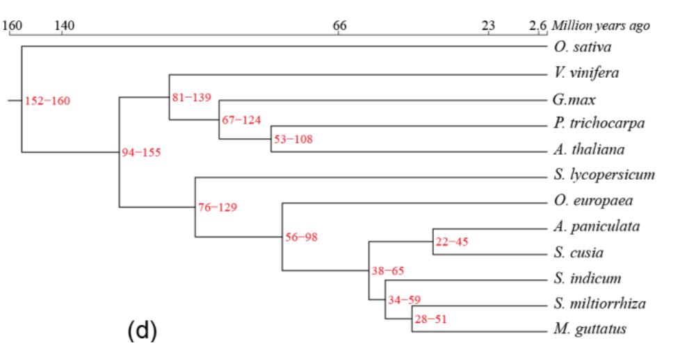 (分支數(shù)字表示分化時間范圍)