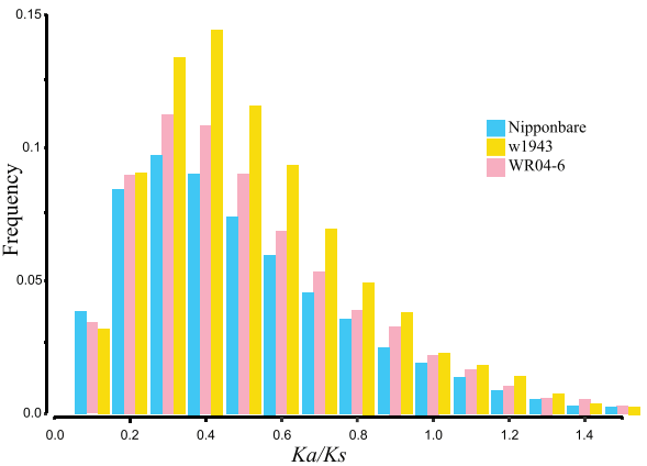 ?雜草稻基因對Ka/Ks值的頻率分布