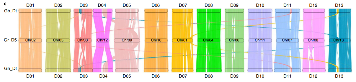陸地棉和海島棉D亞基因組與雷蒙德氏棉(DD型)基因組共線性分析
