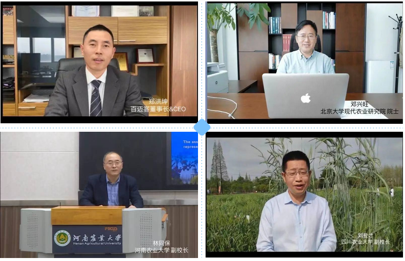 會(huì)議伊始,由百邁客生物科技有限公司董事長(zhǎng)兼CEO鄭洪坤先生、北京大學(xué)現(xiàn)代農(nóng)業(yè)研究院 鄧興旺院士、河南農(nóng)業(yè)大學(xué)林同保副校長(zhǎng)、四川農(nóng)業(yè)大學(xué)劉登才副校長(zhǎng)分別為會(huì)議致辭,同時(shí)表達(dá)了對(duì)本次完成黑麥基因組的破譯的祝賀。