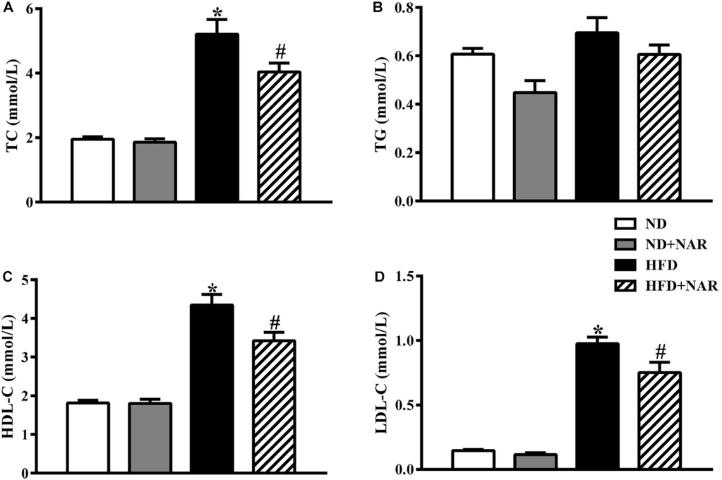 圖2 NAR對HFD小鼠血脂水平的影響