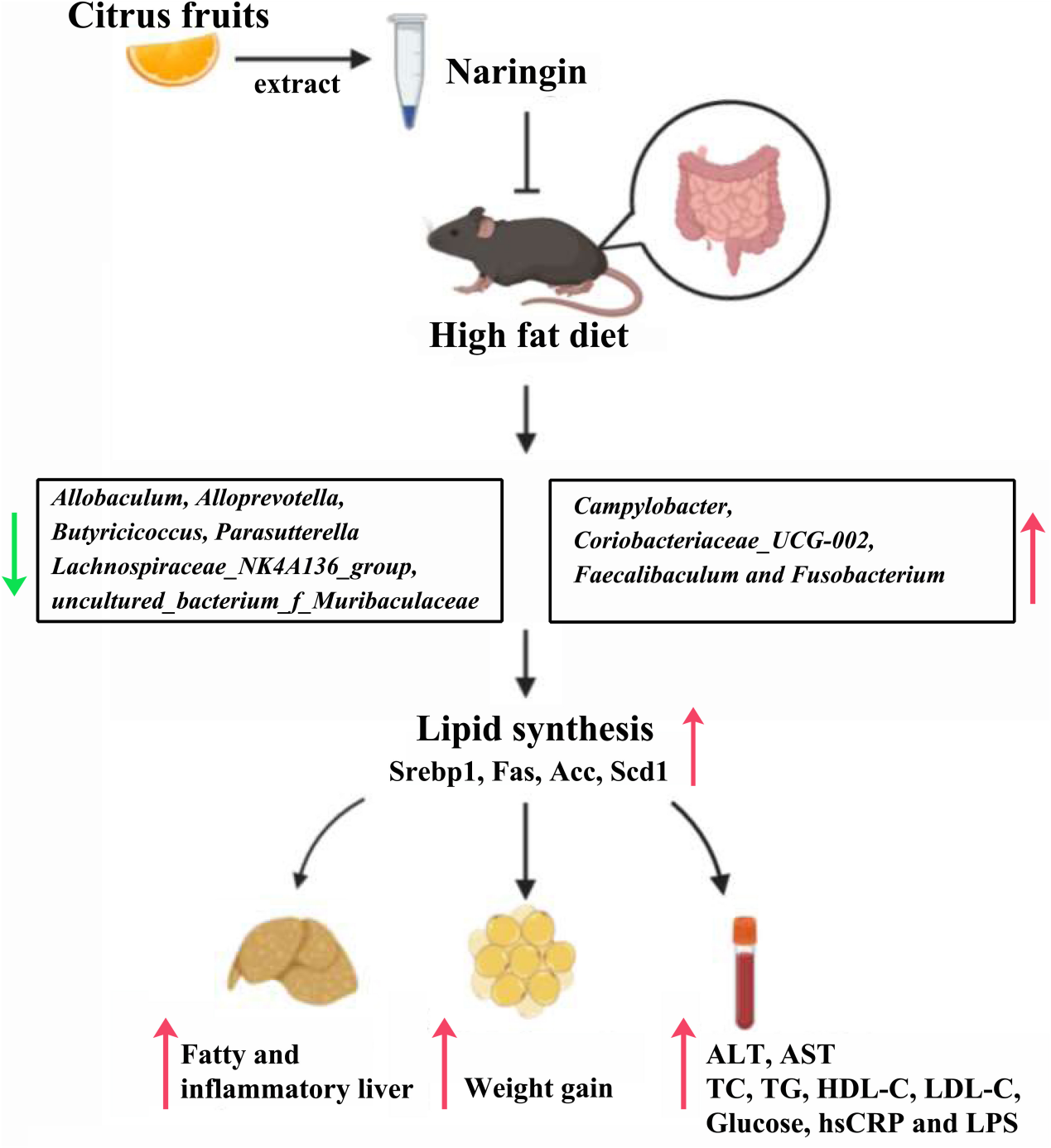 英文題目:Naringin Attenuates High Fat Diet Induced Non-alcoholic Fatty Liver Disease and Gut Bacterial Dysbiosis in Mice