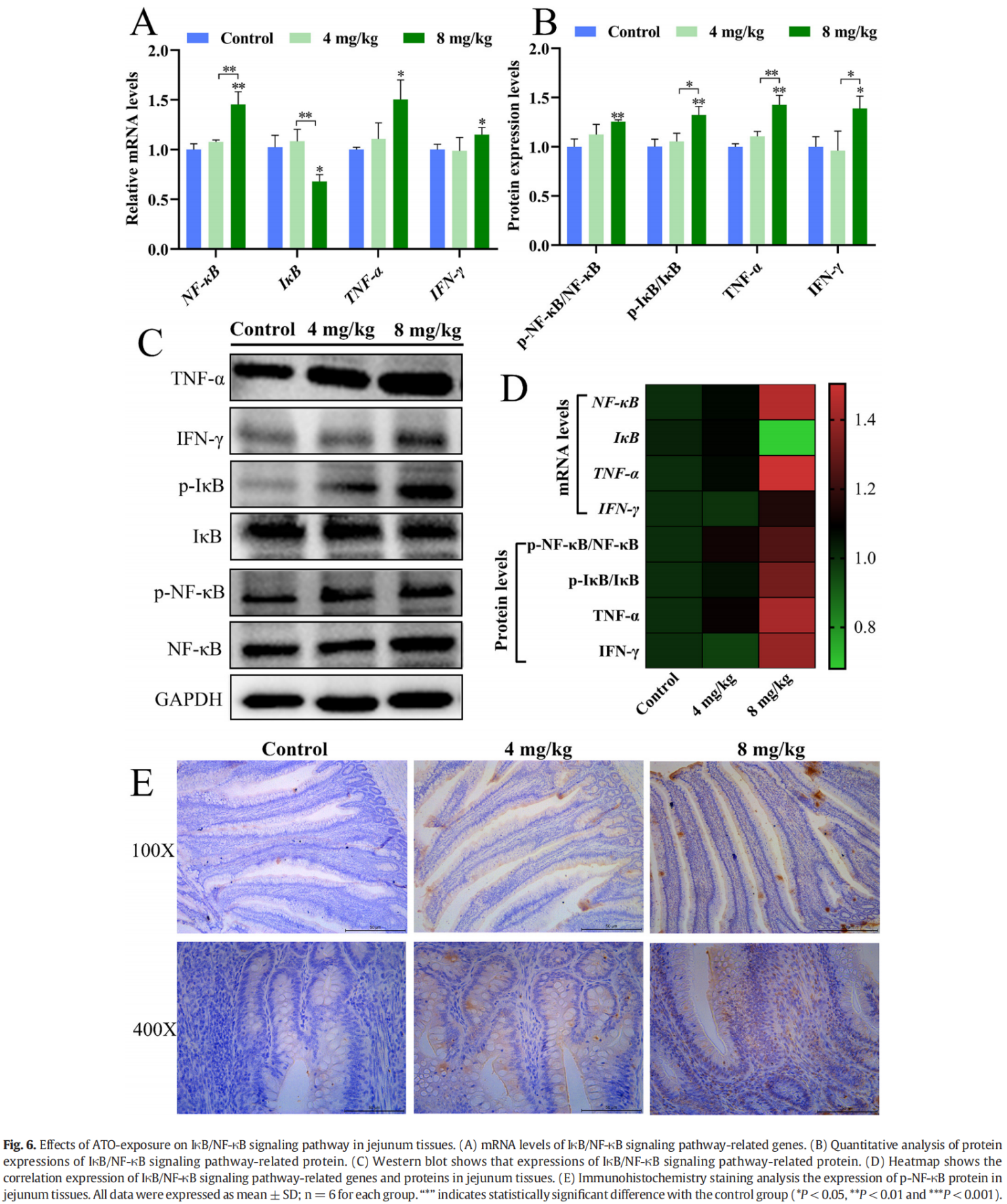 ATO暴露對空腸組織IκB/NF-κB信號通路的影響
