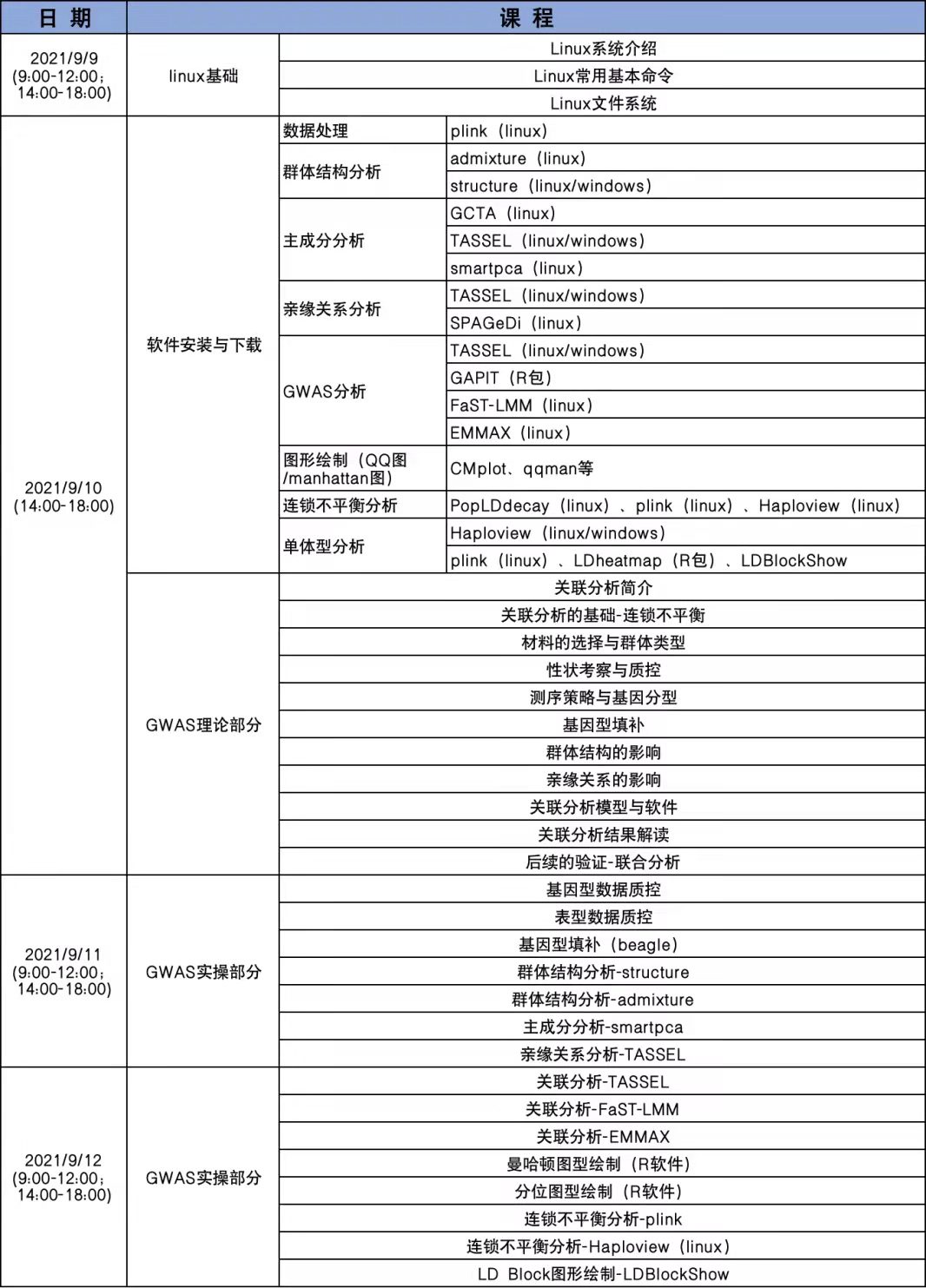 本課程主要從實踐入手,重點講解 GWAS 分析中用到的各種分析方法與常用分析軟件,包括群體結(jié)構(gòu)分析、主成分分析、親緣關(guān)系分析、連鎖不平衡分析、單體型分析等內(nèi)容。從原始數(shù)據(jù)開始,逐步完成分析內(nèi)容,并對分析內(nèi)容進(jìn)行整理與挖掘,將數(shù)據(jù)轉(zhuǎn)化成更直觀的圖形來展示最終的分析結(jié)果。同時,課后還可反復(fù)觀看上課視頻,有問題隨時售后群中交流溝通,真正實現(xiàn)“線上學(xué)習(xí)理解,課后練習(xí)指導(dǎo),課下文檔復(fù)習(xí)”。