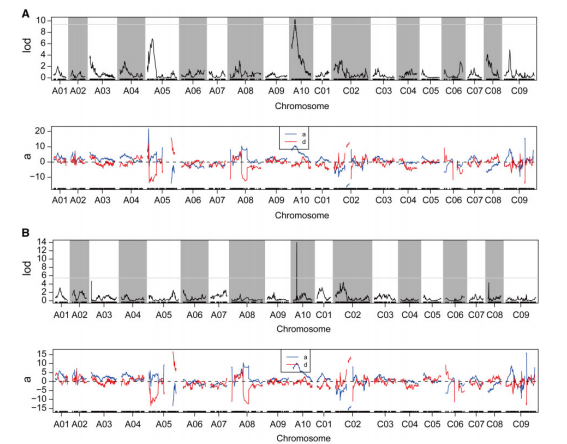 圖2 基于?IM和CIM的QTL定位結果