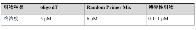 不同mRNA拷貝成cDNA的效率不同;因此,選擇合適的逆轉錄酶、二價陽離子、dNTP、引物的選擇等非常重要。具體參數(shù)如下:
