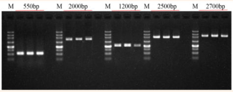 圖4:以1μl人肝癌細胞RNA為模板,用BiomarkerScript Ⅱ 1st Strand cDNA Synthesis Kit進行逆轉錄,得到cDNA產(chǎn)物。再以100?ng cDNA為模板,用Biomarker HS 2× HF Master Mix進行PCR擴增,將得到的產(chǎn)物進行瓊脂糖凝膠電泳,結果所示:擴增條帶單一且產(chǎn)量高。