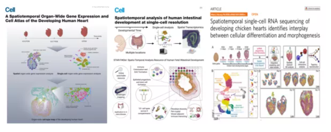 細(xì)胞在空間位置的異質(zhì)性,對于干細(xì)胞分化、組織發(fā)育和再生起著重要作用,空間轉(zhuǎn)錄組技術(shù)已經(jīng)在人的胚胎心臟、胚胎腸道和雞的胚胎心臟發(fā)育中得到應(yīng)用,探明了胚胎發(fā)育的動態(tài)過程,空間組學(xué)發(fā)展可以清晰的描繪胚胎發(fā)育的藍(lán)圖。